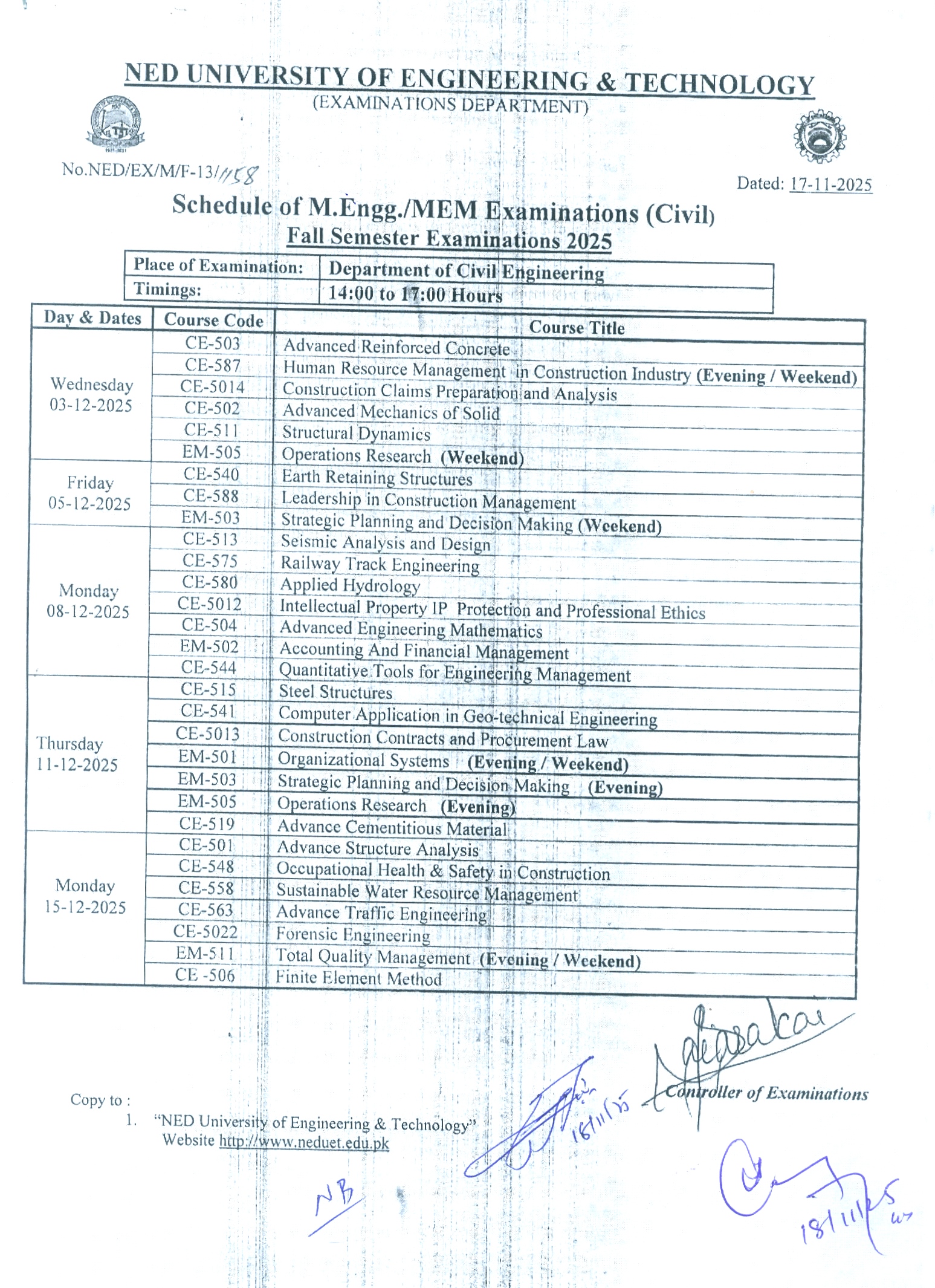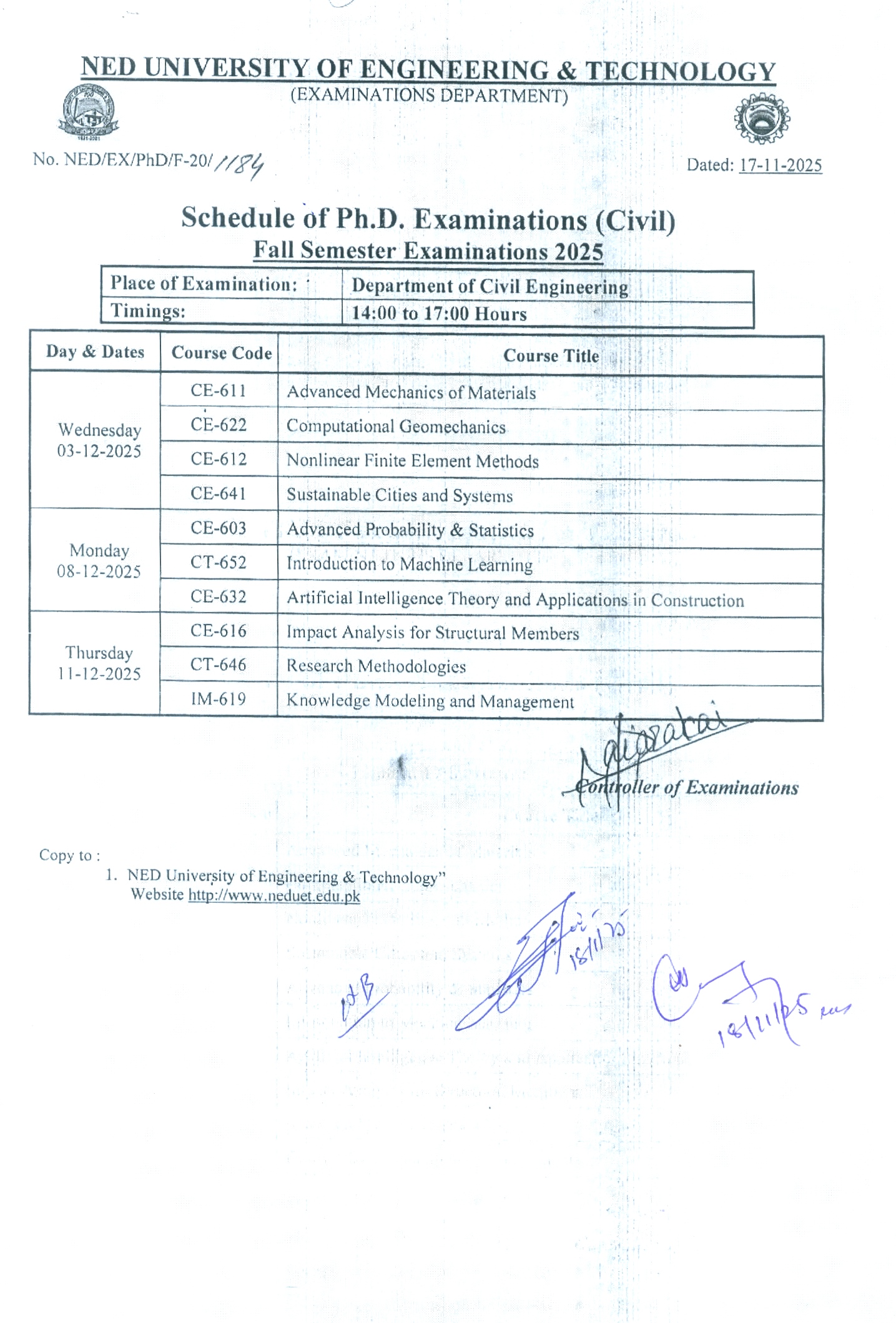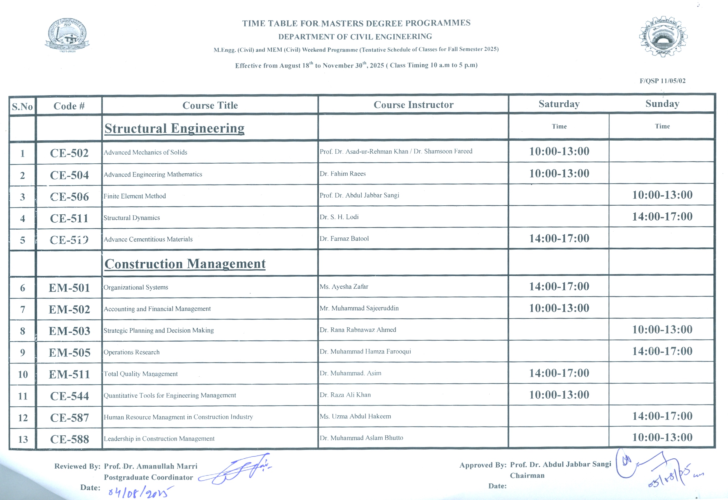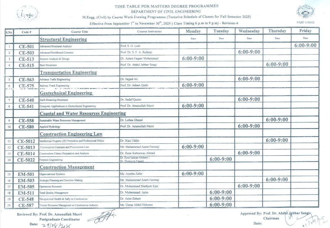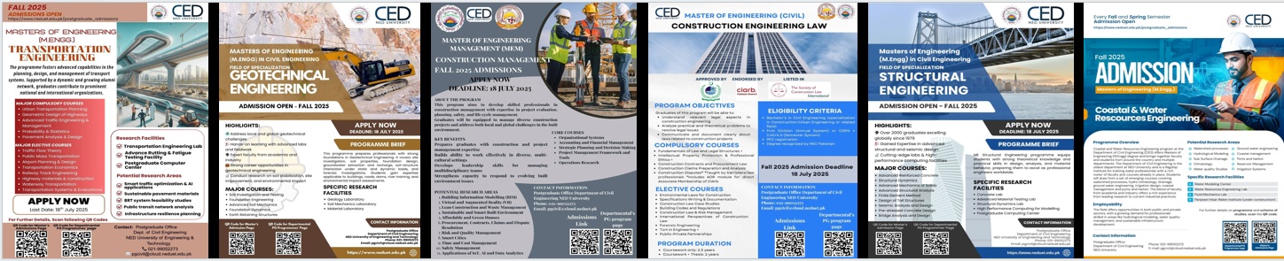 Vision - To excel in teaching, research and innovation in civil engineering and associated fields to produce human capital delivering professional services and leadership contributing towards sustainable development at national and global level.