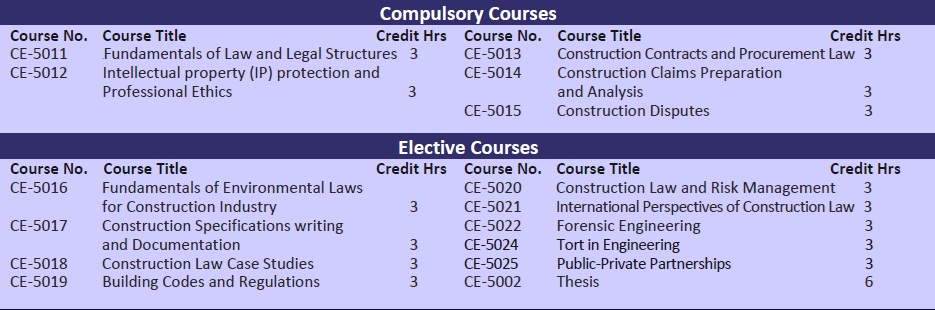 Graduates of this program will be able to perform effectively and accurately in areas of Construction Engineering law. Specifically, the graduates of this program will: