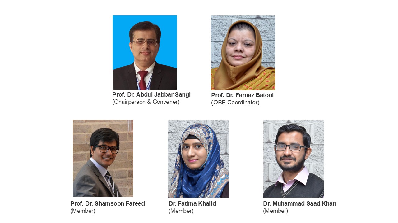 The Department of Civil Engineering has adopted Outcome-Based Education (OBE) and Outcome-Based Assessment (OBA) for its Bachelor of Engineering (Civil) program, as recommended by the Engineering Accreditation Board (EAB) of the Pakistan Engineering Council.