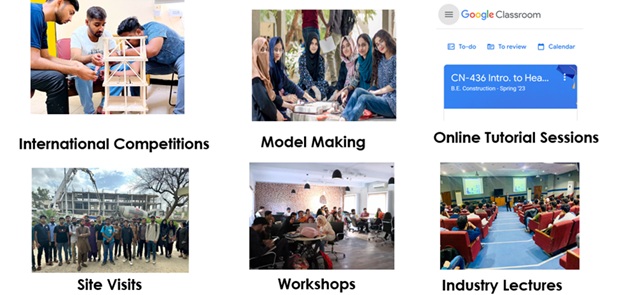 The department firmly believes in online tutorial sessions and the use of digital learning platforms, such as Google Classroom, which allow students to review lessons, join discussions, and get support anytime other than the classroom. Students also visit real project locations to observe how classroom concepts are applied in the field.
